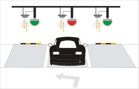 这样,开车进入停车场的驾驶员通过识别指示灯亮绿灯的状态,就能灵便、快捷地找到停车位,避免了驾驶者在停车场里绕圈而又焦急的寻找车位的烦恼。